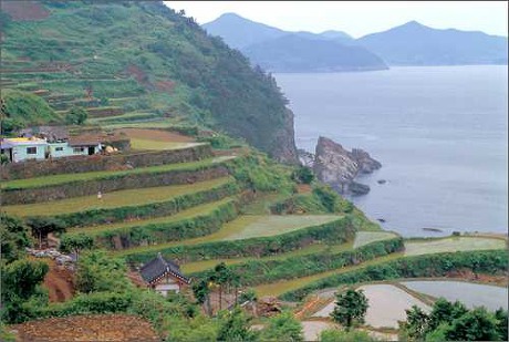 남해군 바닷가의 계단식 논