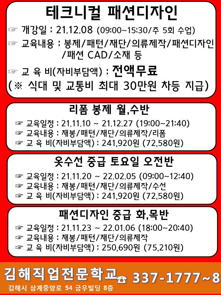 ▶올해마지막전액국비수업◀ 봉제,패턴,재단,의류제작,패션디자인