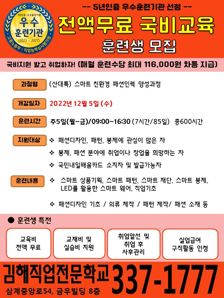 <마감임박>100%전액지원, 패션디자인 양성과정